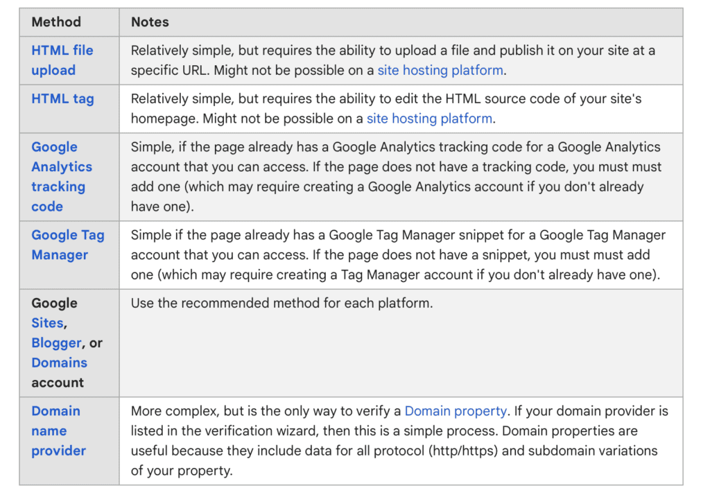 Once we have created an account, it should be verified to confirm that the domain in question belongs to us and we have rights to it. We have several different options to choose from.